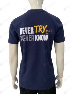 เสื้อยืดคอกลม ตัดต่อ สีน้ำเงิน เหลือง สกรีน no.22