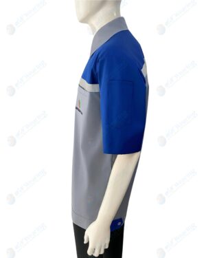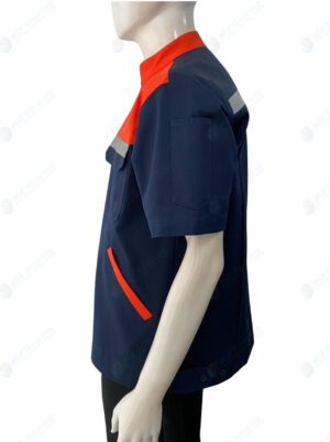 เสื้อช็อป แขนสั้น-4 ตัดต่อ สีน้ำเงิน-เทา คาดเทปสะท้อนแสงหน้า-หลัง ปักอกซ้าย แขนติดกระเป๋าปากกา