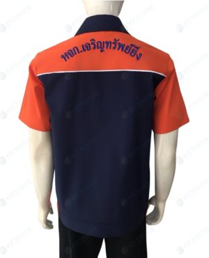 เสื้อช็อป แขนสั้น-6 ตัดต่อ สีส้ม-กรมท่า ปักอกซ้าย-ขวา แขนติดกระเป๋าปากกา