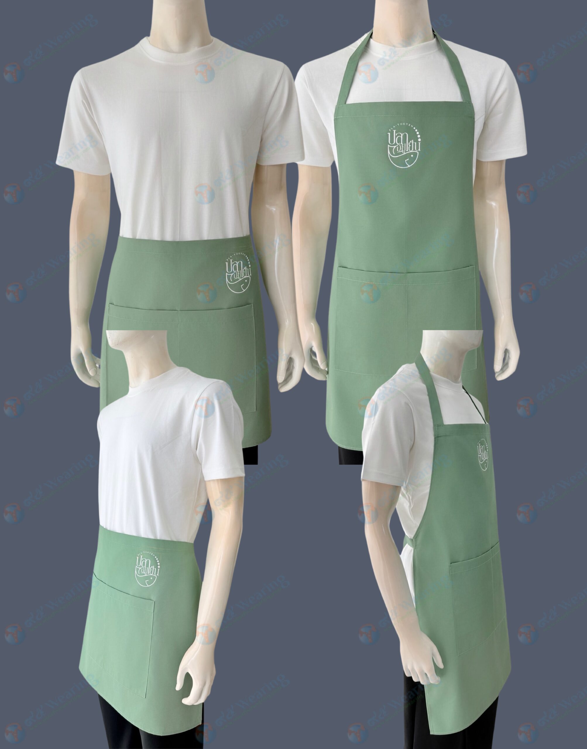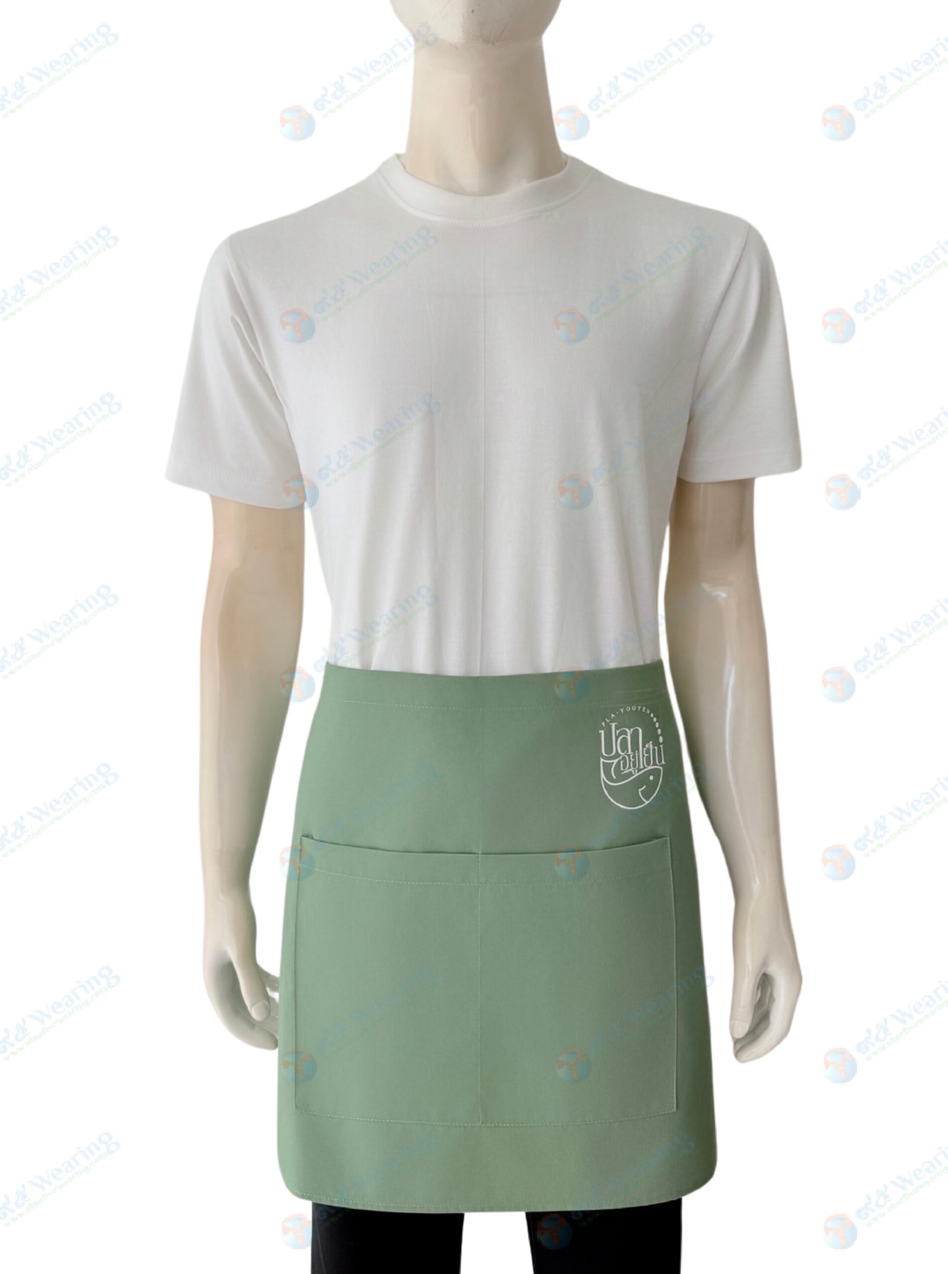 ผ้ากันเปื้อน ครึ่งตัวสีเขียวพาสเทล มีกระเป๋า สกรีนซ้าย [01]
