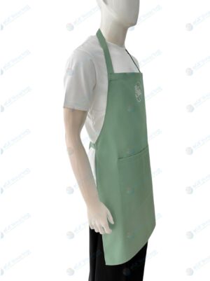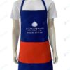 ผ้ากันเปื้อน สีน้ำเงิน มีกระเป๋า สีขาวสลับเหลืองสกรีนตรงกลาง [04]