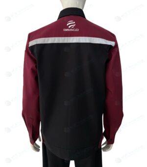 เสื้อช็อป แขนยาว สีดำตัดต่อสีแดง ติดเทปสะท้อนแสง กระเป๋าสองข้าง ปักอกซ้ายและข้างหลัง [05]