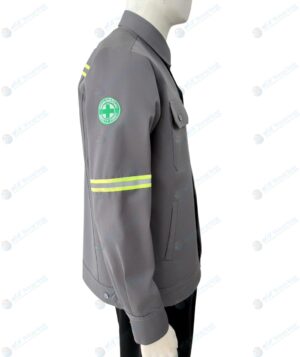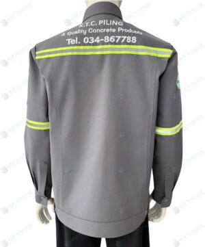 เสื้อช็อป แขนยาว สีเทา ติดเทปสะท้อนแสงข้างหลัง ปักอกซ้ายและหลัง [23]
