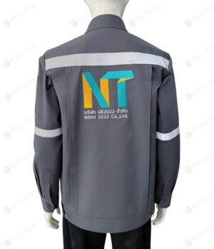 เสื้อช็อป แขนยาว สีเทา ติดเทปสะท้อนแสง กระเป๋าสองข้าง ปักอกซ้ายและข้างหลัง [14]