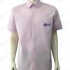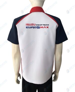 ตัวอย่าง เสื้อเชิ้ต แขนสั้น ตัดต่อ-1 สีขาว-กรมเข้ม คอปกสีแดง ปักอกซ้าย