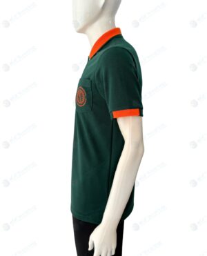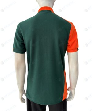 เสื้อโปโลตัดต่อ สีเขียว ตัดต่อข้างลำตัวขวาสีส้ม ปักอกซ้าย [09]